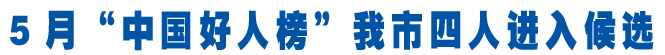 本報訊 (記者齊云霞) 記者昨日從市文明辦獲悉,經省、市文明辦逐級推薦,由中央文明辦主辦、中國文明網承辦的“我推薦、我評議身邊好人”活動5月份候選人名單已經公布,我市的王秋生、靳小秀、張玉貴、李軍萍被列入“中國好人榜”候選人,接受網民評議投票。