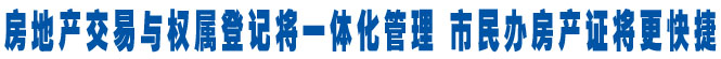 本報訊 (記者梁智玲) 記者從市房產管理中心了解到,我市將推行房地產交易與權屬登記一體化管理,改變目前分散管理的工作方式,實現一站式服務,一次性綜合收費,真正為群眾提供高效、便捷的服務。
