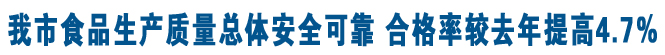 本報訊(記者劉婧 實習生張苗)昨日,記者從市食品安全辦獲悉,市食品生產加工環節2011年第一批市級監督抽查結果出爐,抽檢結果顯示,此次抽檢產品合格率較去年提高4.7個百分點,其中大中型生產企業的產品合格率為100%。我市的食品生產質量總體安全可靠。