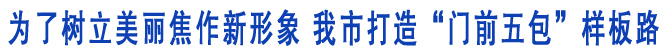 3月2日,我市全面啟動了“美麗焦作大家行”活動。活動重在號召城區主干道兩側門店落實“門前五包”責任制,為焦作更美麗作出應有的貢獻。“門前五包”,即包市容秩序規范、包環境衛生整潔、包美化亮化達標、包綠地綠化完好、包設施功能完善。通過這一具有廣泛的群眾性、自覺性、現實性和長期性的城市管理模式,實現城市道路及兩側市容秩序井然、車輛停放有序、環境衛生整潔、各類廣告標牌規范、園林綠化品位提高、市政設施功能完善的目的。