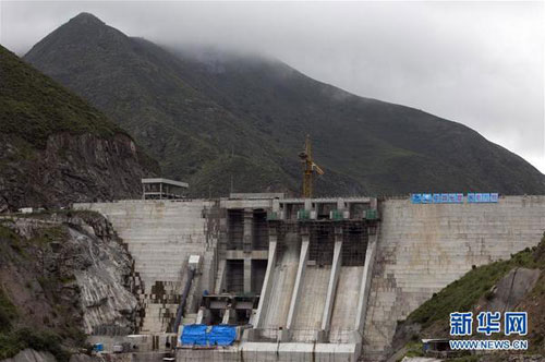這是2017年4月13日在厄瓜多爾阿蘇艾省拍攝的美納斯水電站水壩。新華社發(圣地亞哥·阿馬斯攝)