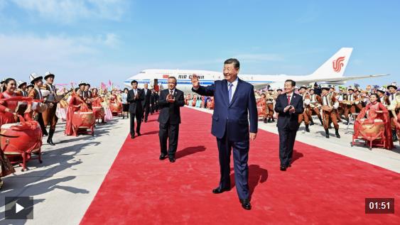 習近平率中央代表團抵達烏魯木齊出席新疆維吾爾自治區成立70周年慶;顒