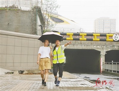 焦作騰飛市政公司防汛應急搶險隊在人民路店后橋值守。