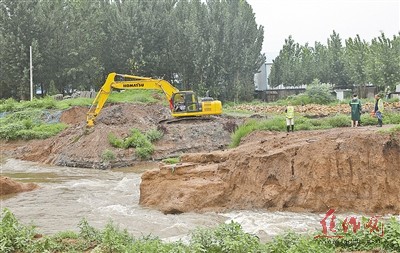 相關部門在白馬門河府城村段加固河岸。