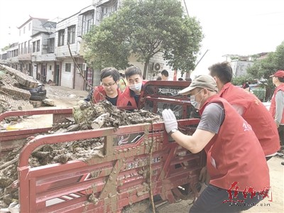 在完成本校清淤消殺任務外,焦作一中還派出黨員志愿者奔赴受災較重的光亞新村開展清淤清掃工作,幫助居民重建家園。光亞新村正好位于甕澗河泄洪口,居民房屋多處進水,街道上到處都是污泥、垃圾、樹枝和建筑殘骸,居民出行困難。該校黨員志愿者趕到后,發(fā)揚不怕苦、不怕累的精神,站在污泥中把散發(fā)臭味的垃圾裝車運走,他們不顧泥點飛濺、不顧汗流浹背,一心只想讓居民的生活環(huán)境更健康。經過近4個小時的努力,光亞新村街道上的垃圾、淤泥和積水基本清理干凈。