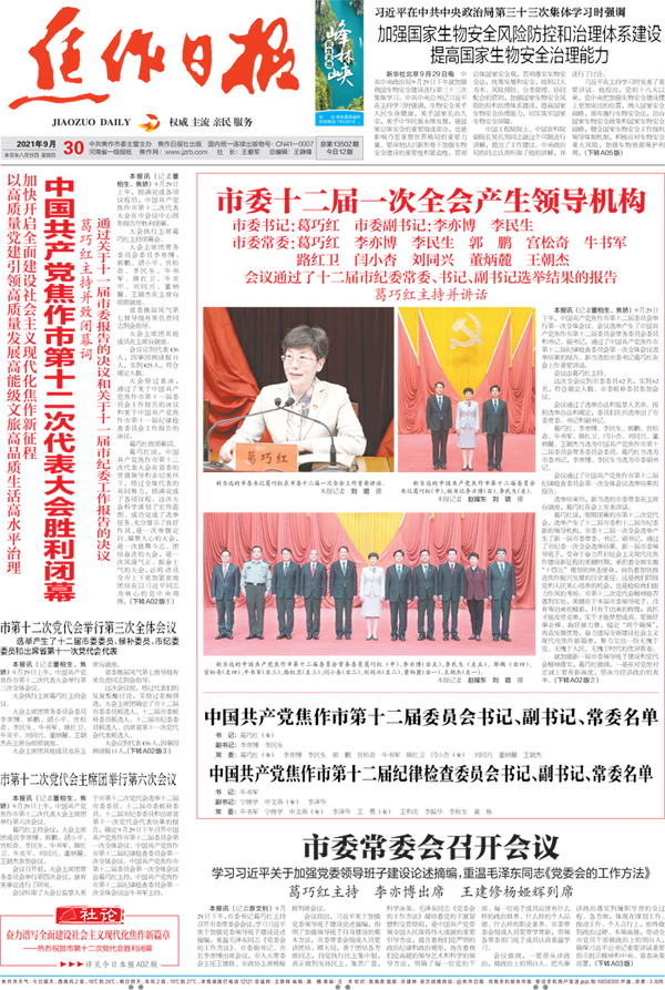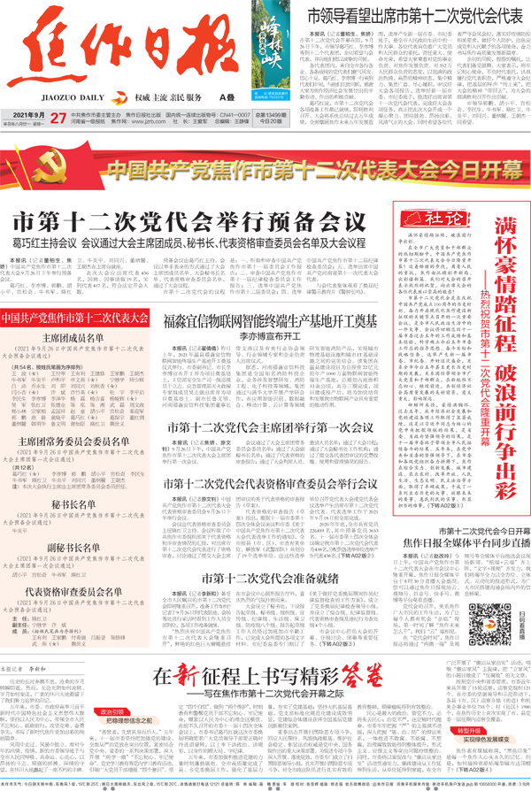 美編設計:王雪靜 版權所有:河南省焦作日報社 未經授權,請勿轉載或建立鏡像。聯系電話:8797000,18639136090 地址:焦作市人民路1159號 報業·國貿大廈 郵編:454002 如有意見或建議請MAIL:jzrbcn@163.com 豫ICP備14012713號-1 互聯網新聞信息服務許可證:41120180013