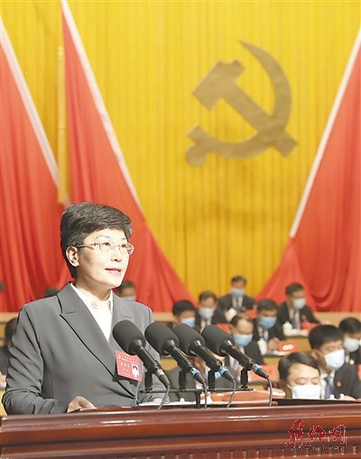 在熱烈的掌聲中,葛巧紅代表中國共產黨焦作市第十一屆委員會向大會作了《錨定“兩個確保”,再造發展優勢,奮力譜寫全面建設社會主義現代化焦作新篇章》的報告。報告共分七個部分:一、過去五年的工作;二、今后五年的指導思想和奮斗目標;三、堅定不移推進高質量黨建;四、搶抓機遇推動高質量發展;五、乘勢而上打造高能級文旅;六、以人為本共創高品質生活;七、堅持不懈促進高水平治理。