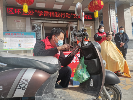 學雷鋒我行動,傳播志愿服務理念。3月5日,該處組織志愿者開展以義務理發、修車為主題的“學雷鋒我行動”文明實踐活動;顒蝇F場,志愿者在解放區環衛處門前擺放了簡單的桌椅,擺上理發工具,為過往群眾、環衛工人進行免費理發。另外,該處還組織有修理特長的志愿者為過往行人免費修自行車和電動車。
