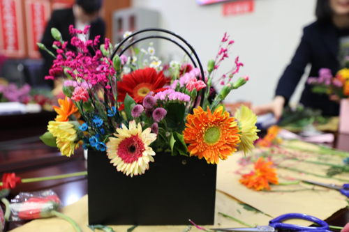最后,分行開展了現(xiàn)場插花活動。中信銀行焦作分行工會主席范冬萍致辭,在第111個(gè)“三八”國際勞動?jì)D女節(jié)慶祝之日,向全體女同胞致以節(jié)日的問候和美好的祝福,表示女同志們以“巾幗不讓須眉”的努力和奮斗,起到了不止于半邊天的作用,充分體現(xiàn)了新時(shí)代女性的風(fēng)采。希望婦女同志們珍惜擁有的美好生活,繼續(xù)貢獻(xiàn)智慧和力量,共創(chuàng)分行更好的明天。在插花環(huán)節(jié)中,大家在花藝師的指導(dǎo)下,用靈巧的雙手,將分散的花束裝飾成一件件花籃藝術(shù)品,聞著撲鼻的花香,看著親自插的花籃,大家臉上洋溢出幸福的笑容。活動同時(shí)還組織女職工觀看了中國金融工會“三八大講堂”。