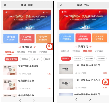 中信銀行專門(mén)給老年朋友準(zhǔn)備的“課程學(xué)習(xí)”一共有智能生活、悅享財(cái)富、琴棋書(shū)畫(huà)和守護(hù)健康四大板塊,都是老年朋友需要和關(guān)心的內(nèi)容,總課程2000余節(jié),總時(shí)長(zhǎng)超過(guò)1.8萬(wàn)分鐘。