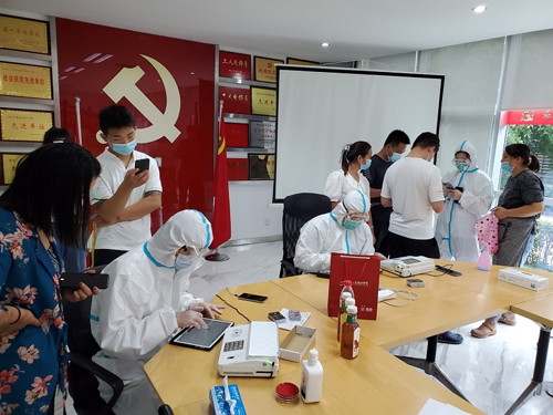 8月1日,商丘市新冠疫情防控指揮部辦公室通報首例確診病例,第一時間召開專題會議,啟動疫情防控應急預案,周密部署疫情防控工作。中信銀行商丘分行各黨支部迅速行動,發揮堡壘攻堅作用,半個小時即對全員完成是否出入中風險地區情況排查。中信銀行商丘分行黨委書記趙春林靠前指揮,親自協調部署,帶領全員進行首輪核酸檢測,及時消除疫情隱患,并同步為全員配足口罩、消毒液等防護物資,組織營業辦公區域進行全面消殺毒,恢復疫情防控期間員工情況日報告制度,堅持每天定時向上級行黨委報告人員情況及網點運營情況,定期向監管部門專題報告防疫工作開展情況,確保疫情防控期間的信息全方位共享共知,反應及時、處理及時。