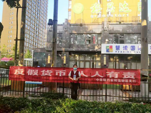 為進一步普及金融知識,提高居民防范能力,中信銀行安陽分行開展“我為群眾辦實事 金融知識進社區”系列宣傳活動,圍繞人民幣知識、反詐拒賭知識進行重點宣傳。