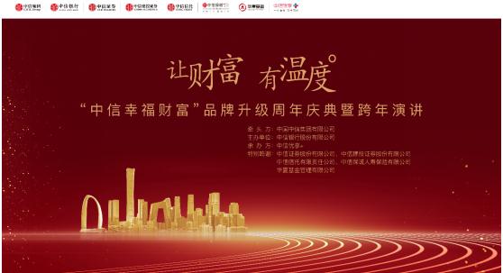 12月30日,“中信幸福財富品牌升級周年慶典暨跨年演講”活動在線上隆重舉行。本次活動由中信集團牽頭,中信銀行主辦,中信優享+承辦,協同中信證券、中信建投證券、中信信托、中信保誠人壽和華夏基金5家中信集團金融子公司攜手打造,以“讓財富 有溫度”為主題,深入探討促進共同富裕大背景下的財富管理。