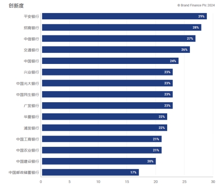 《Brand Finance 2024年中國銀行業(yè)品牌調(diào)研報告》銀行創(chuàng)新度排名