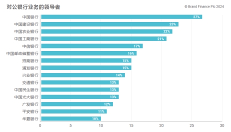 《Brand Finance 2024年中國銀行業(yè)品牌調(diào)研報告》對公銀行業(yè)務(wù)排名