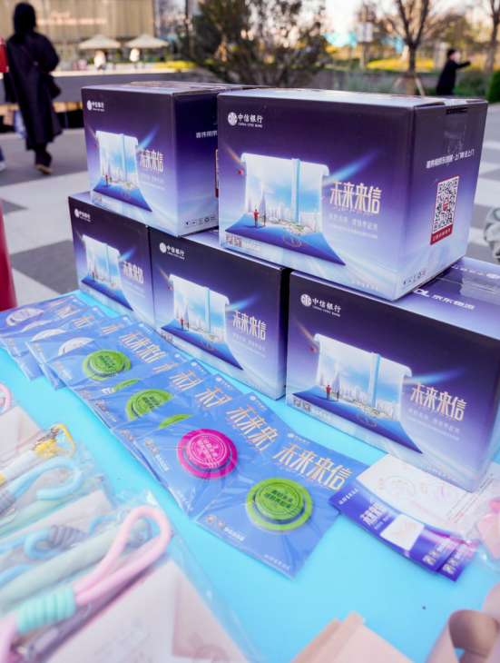最溫情的角落當屬“【信】動瞬間”未來來信打卡墻,特制的深藍色信封合影框里,定格了無數(shù)溫暖瞬間。集齊四枚印章的參與者們在盲盒抽獎區(qū)排起長隊,比起獎品,更珍貴的是他們在游戲中收獲的對未來的認真思考與期待。