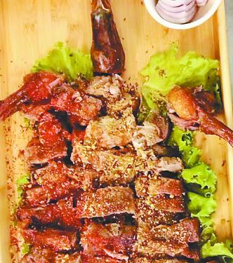 “烤鵝是我們店里的一道特色美食,因為量少,更為了保證烤鵝的上菜速度和鮮美,因此點這道美食的客人都得提前預訂。”楊小舉說,大家都吃過烤鴨、烤羊肉,但烤鵝很多人可能還沒品嘗過它的鮮香美味,有時間了大家可以來感受下烤鵝的鮮美。