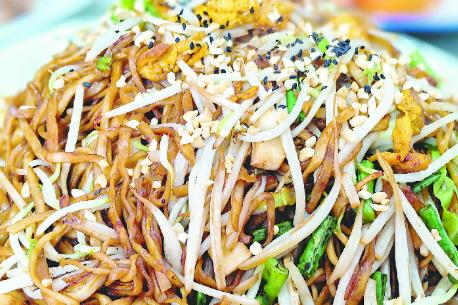 再說店里的炒面,只見那鍋和勺在廚師手里上下翻飛,熱油中爆起雞蛋的香氣,然后放入蔥、姜、蒜、豆角和豆芽。鍋里的面起起落落,勺在調味盒內輕點,料隨勺起撒進鍋里,頓時芳香四溢。最后撒上一些花生碎,一盤炒面在行云流水中上了餐桌。他家的炒面鮮香味美,口感十足。雖然是炒的,但是一點兒不油膩,味道咸淡適中,嚼勁十足,且有雞蛋的香味。豆角的清爽和豆芽的清脆融合在一起,給炒面增添了不少風味,讓整份炒面味道更好。