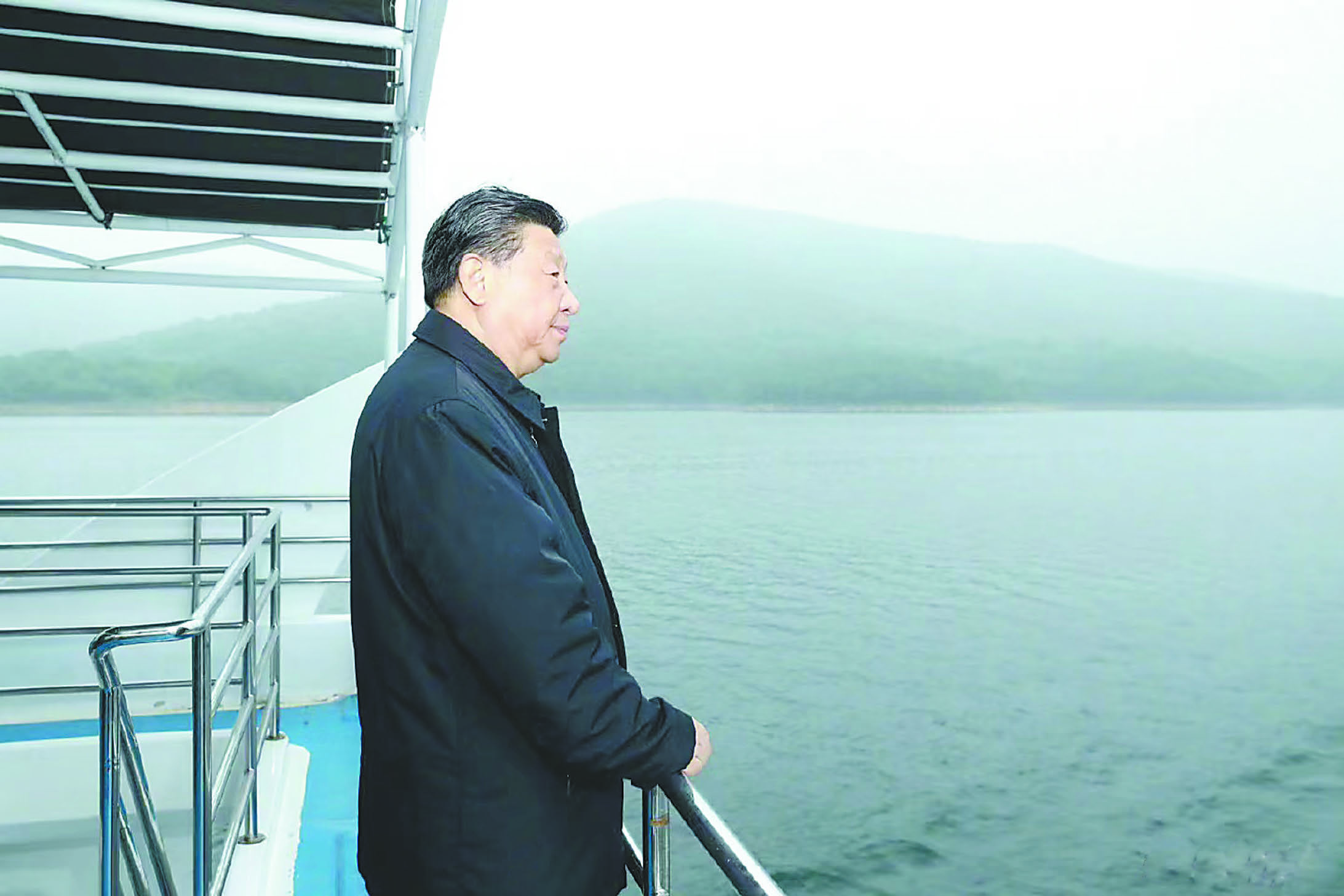 2021年5月14日上午,中共中央總書記、國家主席、中央軍委主席習近平在河南省南陽市主持召開推進南水北調后續工程高質量發展座談會并發表重要講話。這是座談會前,習近平于13日在南陽市淅川縣乘船考察丹江口水庫。