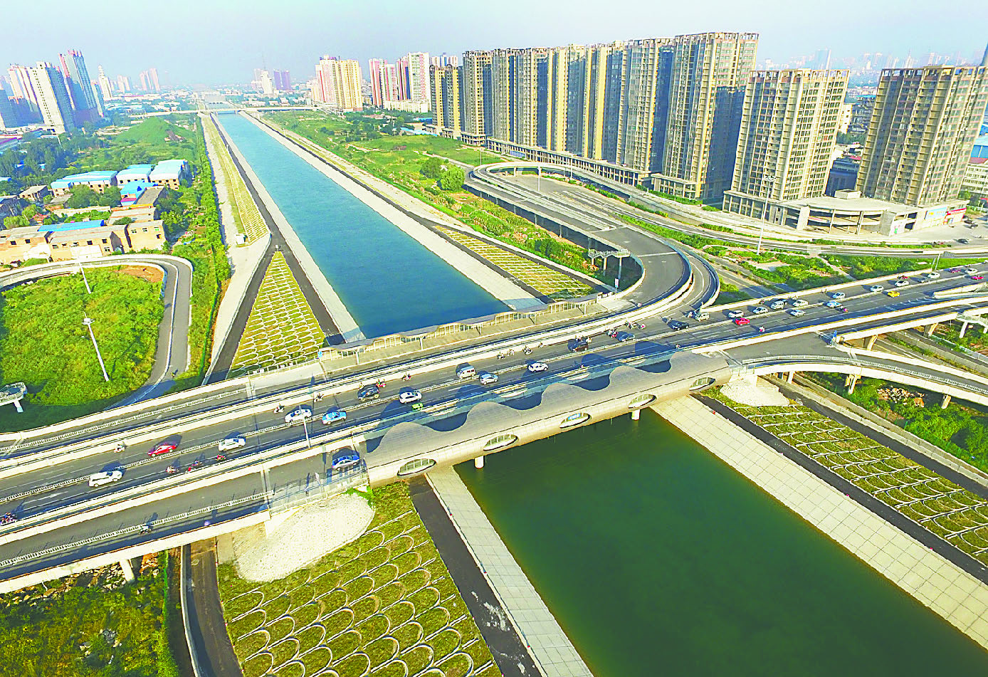 無人機航拍壯觀的南水北調總干渠。 (本報資料照片)