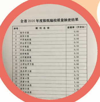 全省2016年度報紙編校質量抽查結果揭曉,《焦作日報》實現零差錯。