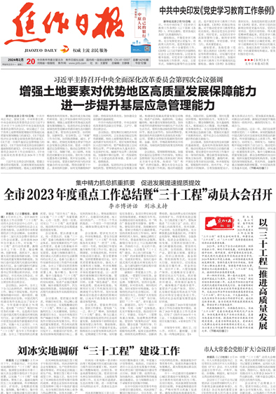 2023年,全市上下全力以赴拼經(jīng)濟(jì)、綱舉目張抓工作、鉚足干勁促發(fā)展,經(jīng)濟(jì)發(fā)展保持穩(wěn)中向好、穩(wěn)中提質(zhì)、穩(wěn)中蓄勢的良好態(tài)勢,中國式現(xiàn)代化建設(shè)焦作實踐邁出了堅實步伐,經(jīng)濟(jì)綜合競爭力排名全省第五,綜合科技創(chuàng)新水平排名全省第四,成績值得肯定。做好2024年的各項工作,要堅持“項目為王”理念,通過實施“三十工程”帶動全市工作整體提升。